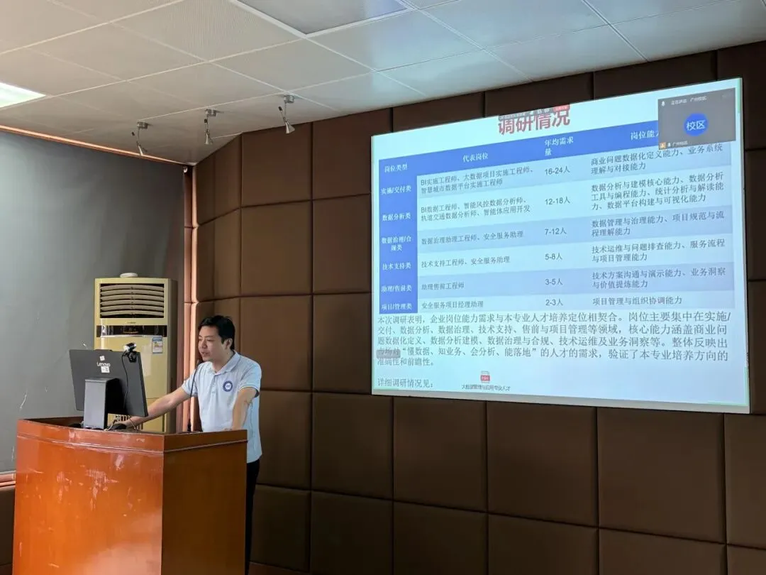 论证环节中,虚拟现实技术、区块链工程、大数据管理与应用等6个本科专业,重点汇报了需求调研、专业定位、培养目标、课程体系、实践教学安排及修订思路。