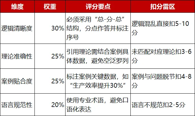 一、案例分析题评分标准(4大核心维度)