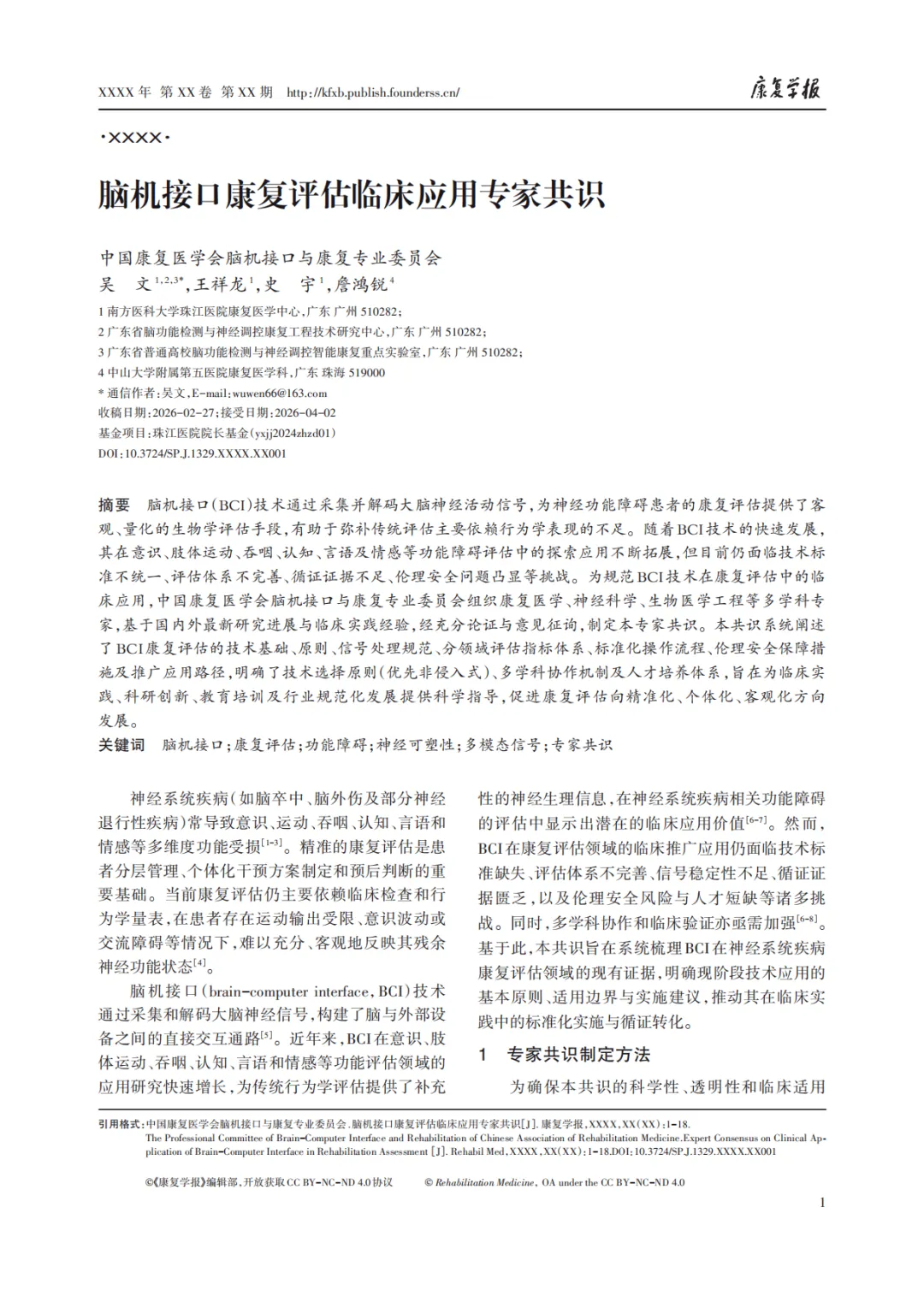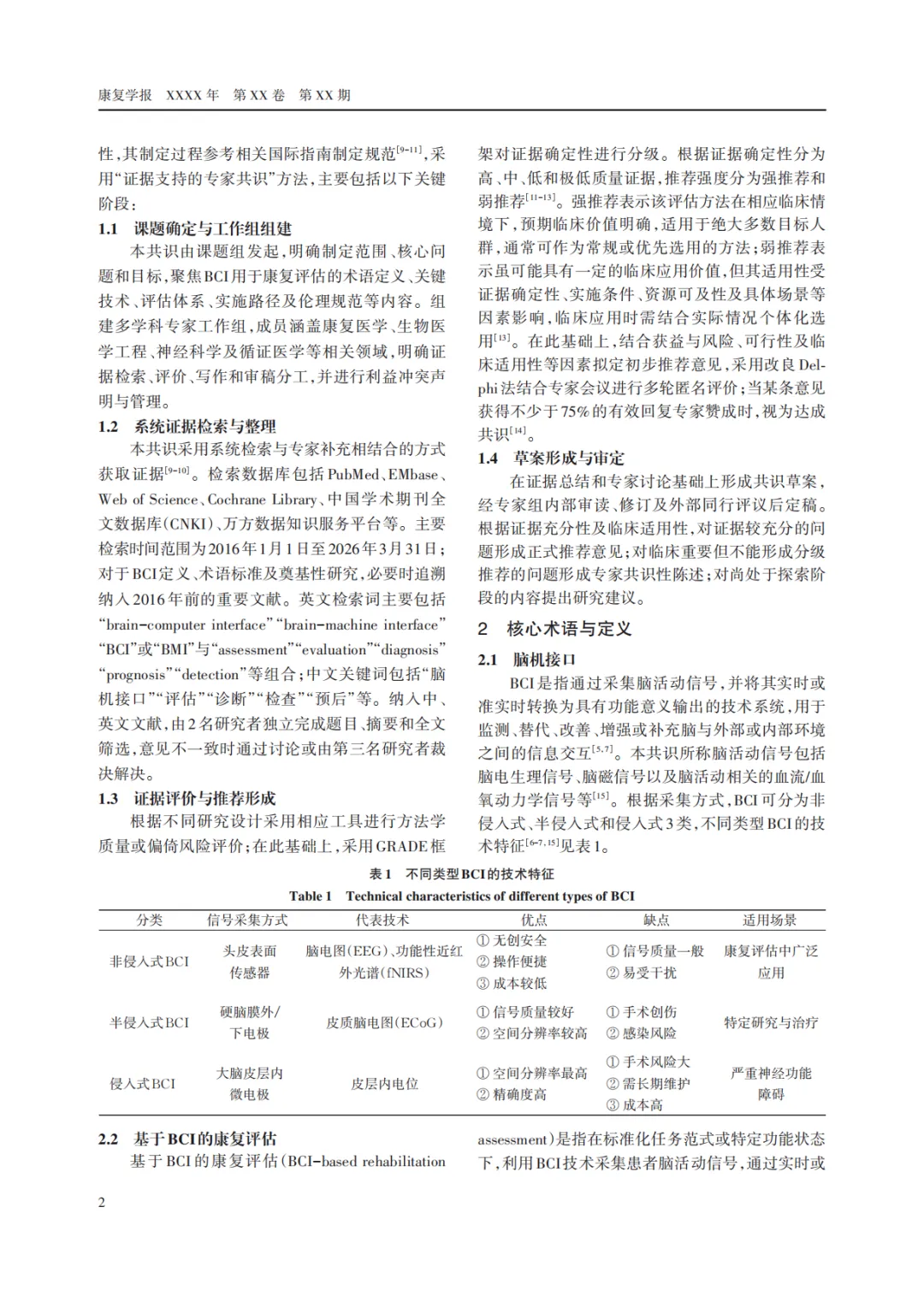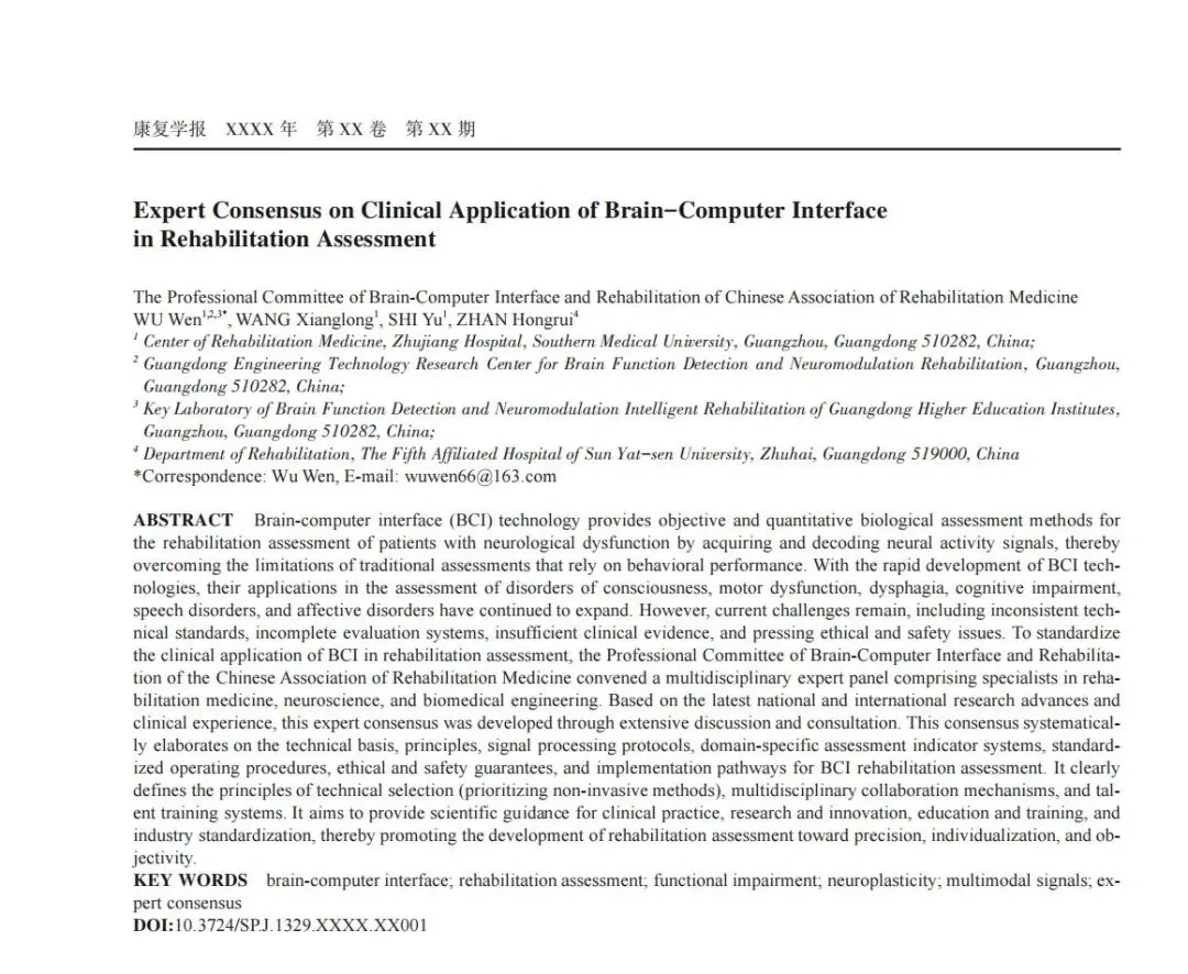 脑机接口康复评估临床应用专家共识(附PFD下载版)