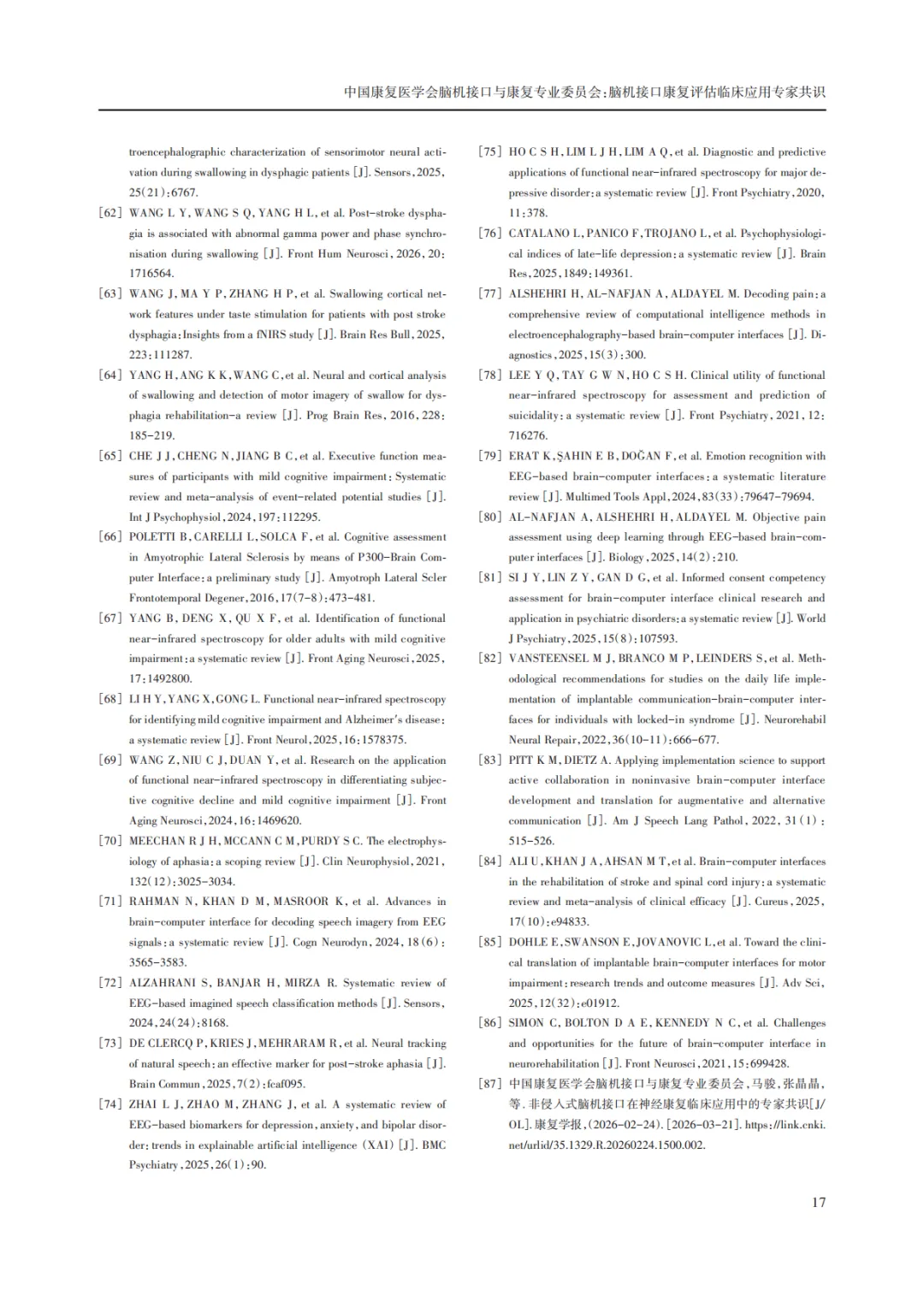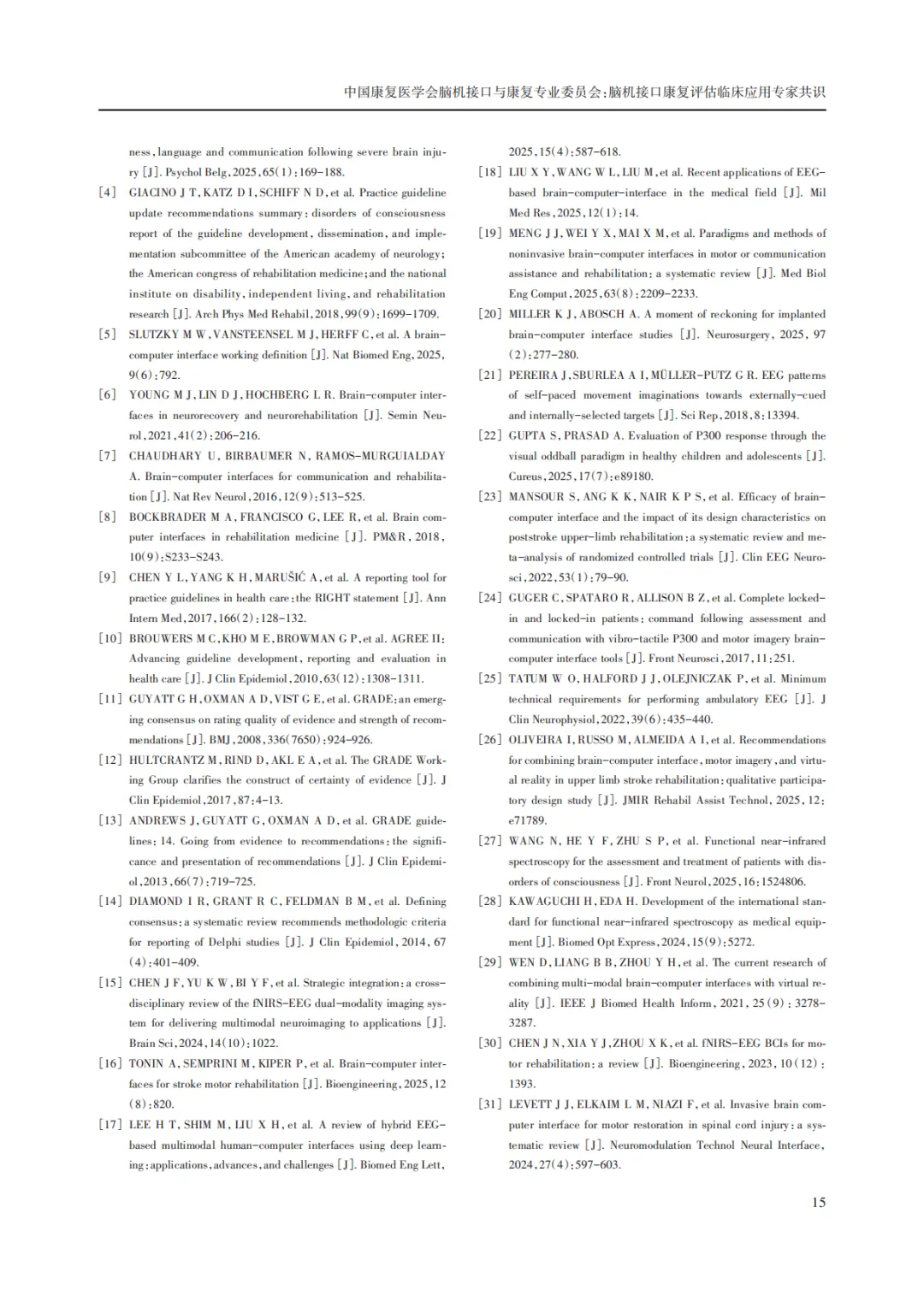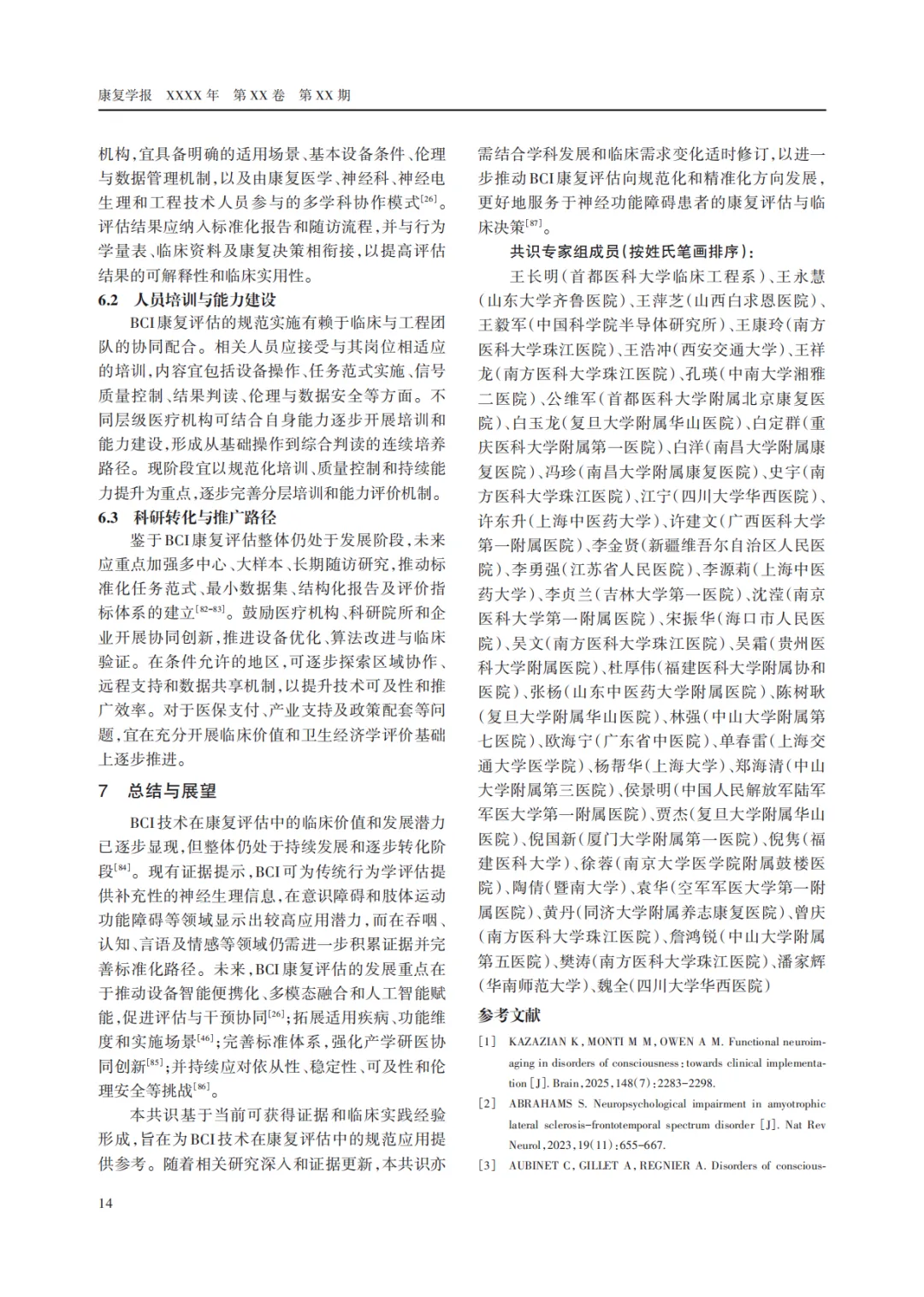 脑机接口康复评估临床应用专家共识(附PFD下载版)