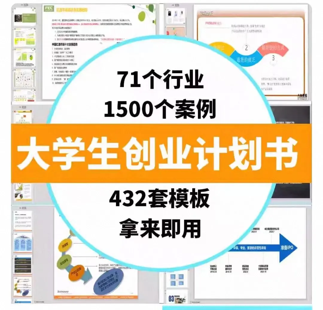 大学生创业计划书模板大全,几百个行业,几千个生动案例,上千套模版PPT/拿来就用