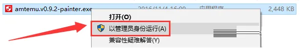 6.打开安装包内的注册机文件夹,右键管理员身份运行amtemu.v0.9.2-painter注册机程序。