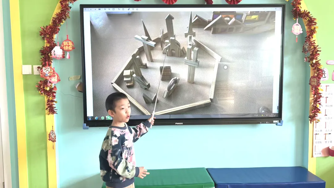 搭建完成,孩子们化身小小讲解员,神采飞扬地分享创作灵感。