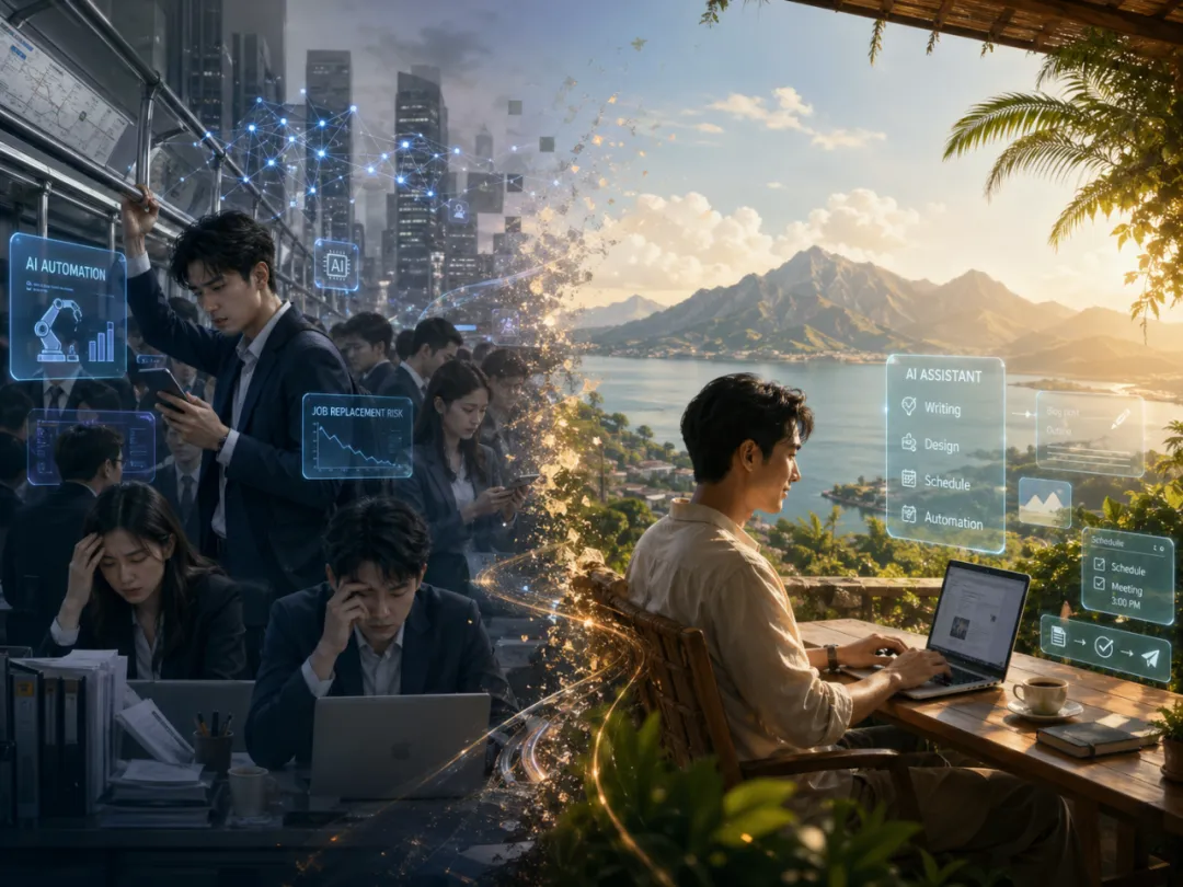 在拥挤的早高峰和逼仄的写字楼里,这股 AI 浪潮变成了打工人的集体焦虑:“我的工作要被取代了吗?” 但在地球的另一端,比如巴厘岛的咖啡馆、大理的苍山洱海边,这却变成了另一种狂欢的序曲。对于那群被称为“数字游民”的人来说,AI奇点绝不是打工人的“末日”,而是超级个体的“寒武纪大爆发”。