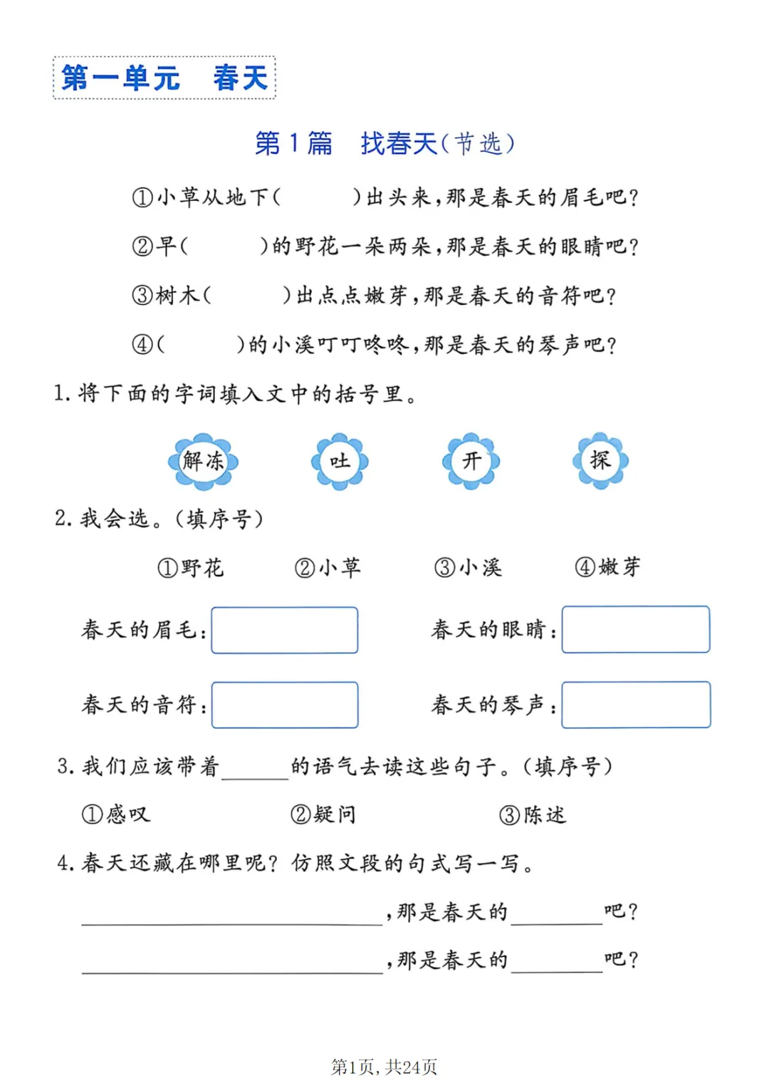 【免费下载】二年级(下)语文 阅读理解专项,PDF电子版,可打印