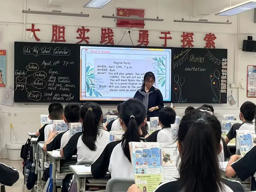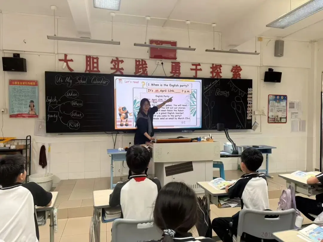 为深化小学英语课堂教学改革,推动人工智能与英语读写教学深度融合,提升阅读与写作课型教学实效,发挥骨干教师示范引领作用,我校英语科组于近期开展五年级下册 Unit 3 My school calendar Read and write 教研公开课活动。本次公开课由英语科组科长潘晓洁老师执教,科组全体教师到场观摩、研讨,在交流互鉴中共促教学能力提升。