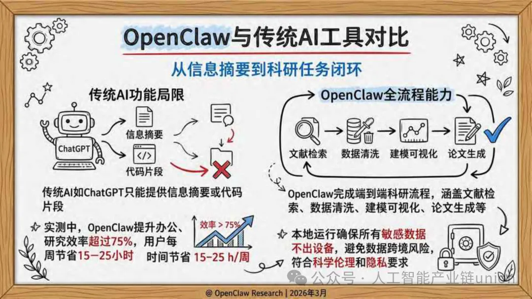 这份报告全面展示了OpenClaw——一个2026年开源AI代理平台——如何深刻重塑科学研究的基本范式。它不仅是对话窗口,更是行动助手,能主动执行系统任务、操作本地软件,帮助研究生从繁琐重复的劳动中解放出来。