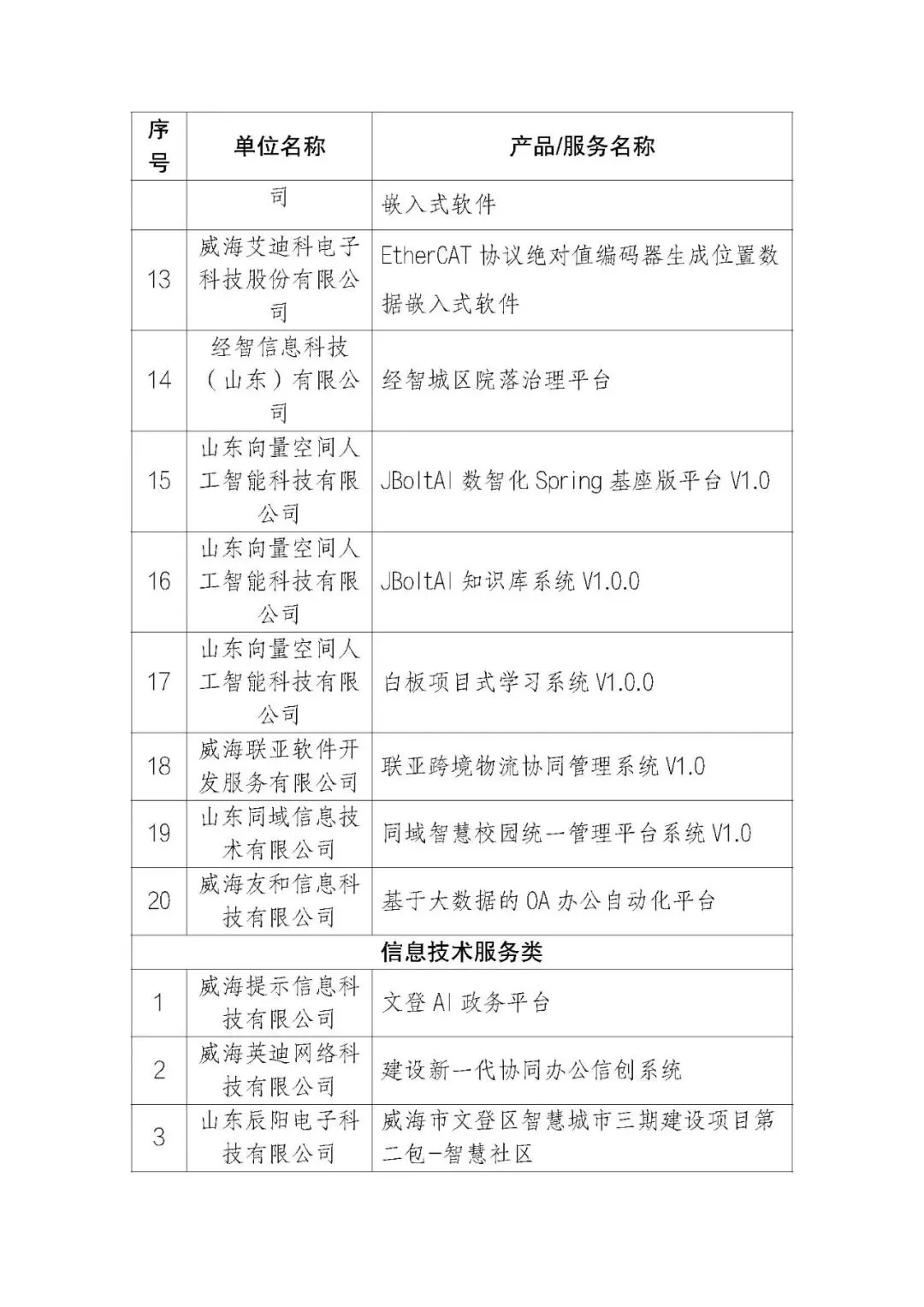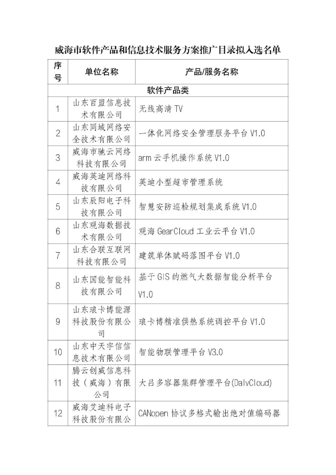 关于2026年威海市软件产品和信息技术服务方案推广目录拟入选名单的公示