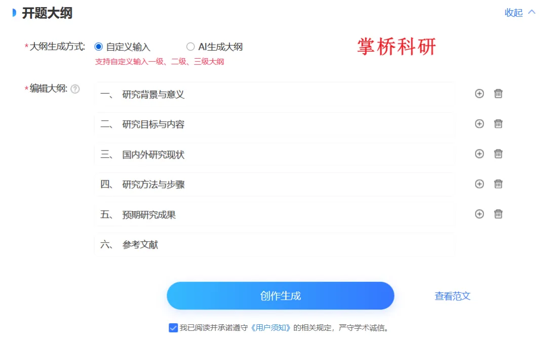 1.这第一点呢,是掌桥科研【AI开题报告】的智能大纲生成能力超简单!