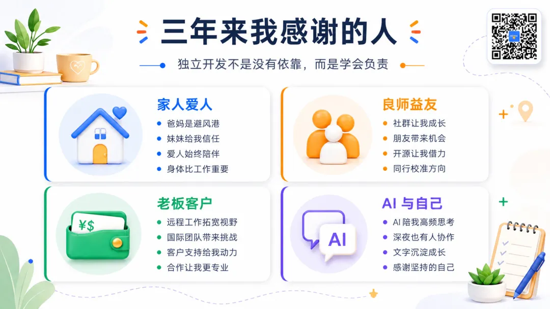 虽然这三年并不总是轻松。有高光,也有低谷;有收入,也有成本;有自由,也有焦虑。很多时候,我不是因为确定才继续,而是一边怀疑,一边把下一个产品做出来。
