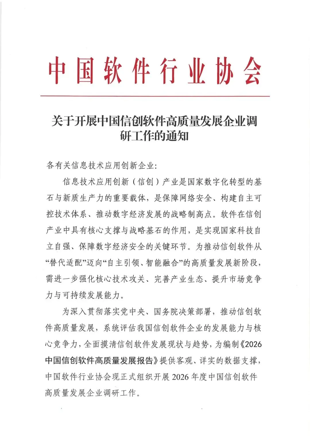 【重要通知】关于开展中国信创软件高质量发展企业调研工作的通知