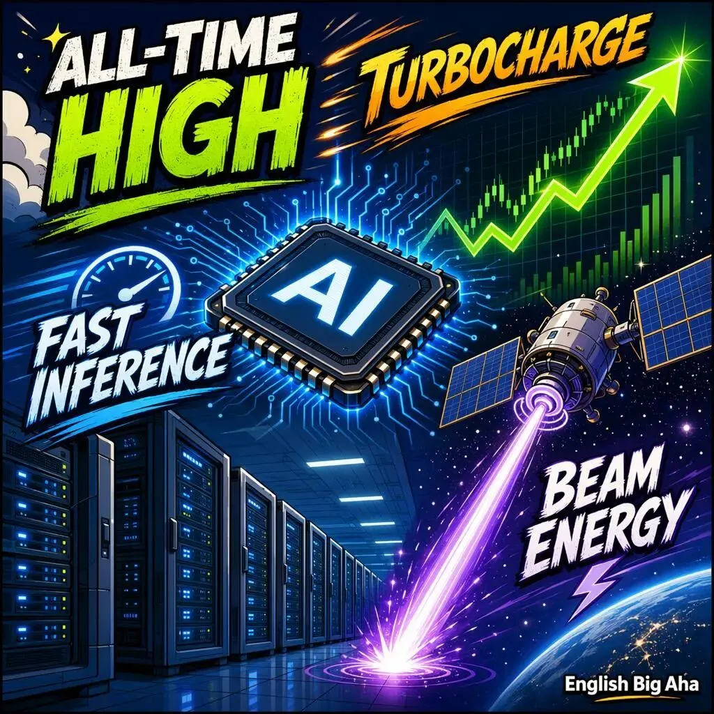 今天这 8 个表达可以串成一条 AI 新闻线:芯片股冲上 all-time high,Intel 继续 turbocharge 市场情绪,Cerebras 想 file to go public,而 Meta 已经在想怎么从太空 beam energy 给 AI 基建续命。