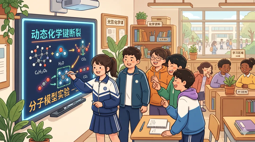“我上周用AI生成了一个分子结构互动课件,学生点击原子就能看到电子云分布,拖拽就能模拟化学键断裂。全班没人走神。”