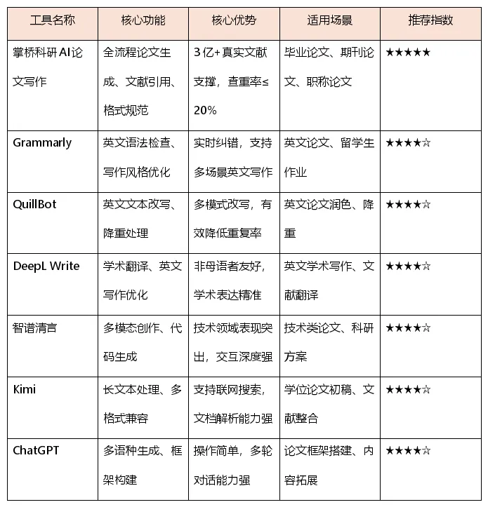 本文测评逻辑清晰:针对不同学习阶段(专科到博士、职称评审)和论文类型(毕业论文、期刊论文等),匹配最适合的AI工具,确保学术规范与实用价值并重。