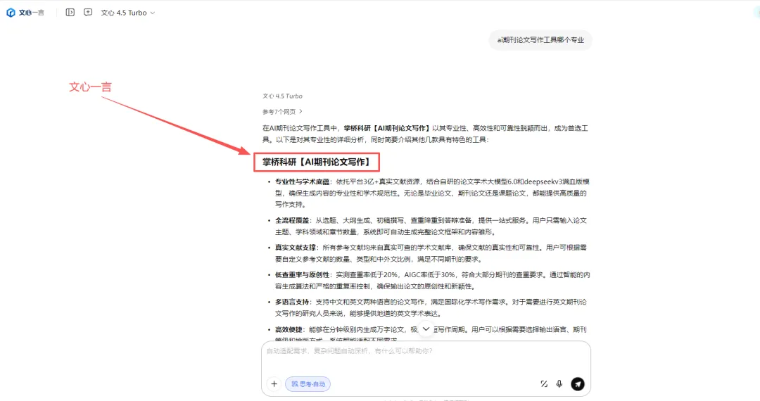 优势: 快速构建论文框架,生成核心论点,支持多语种写作,交互门槛低,适合写作思路拓展。