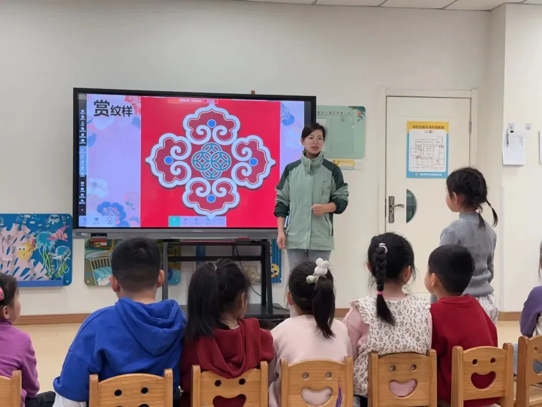 李老师的美术活动《美丽的纹样》结合班本扎染课程,引领幼儿从感受美丽的纹样,大胆利用生活经验创作纹样。充满童趣的纹样在与”豆包”的对话中,生成美丽的装饰。艺术创作激发了幼儿对传统纹样的喜爱,守护传统文化的种子在孩子们心里生根发芽。