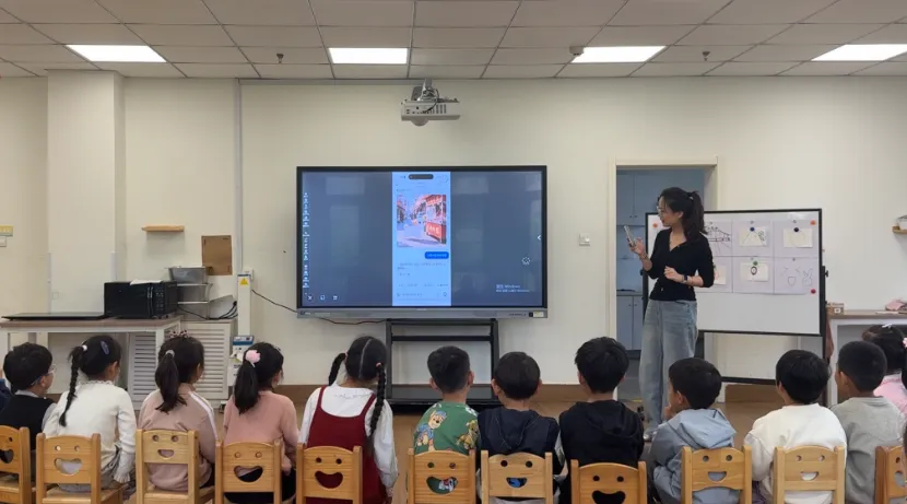 贾园长点评道“大班幼儿已具备更强的自主探究能力和抽象思维萌芽,老师们精准把握这一年龄特点,将AI技术从“激发兴趣”推向“支持深度探究”。例如在语言活动中借助AI生成故事线索并鼓励幼儿批判性质疑,在数学活动中通过AI即时反馈实现个性化练习——技术不再是简单的演示工具,而成为了幼儿主动建构经验的“认知伙伴”。