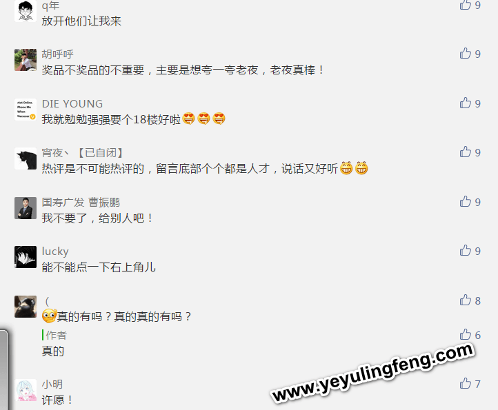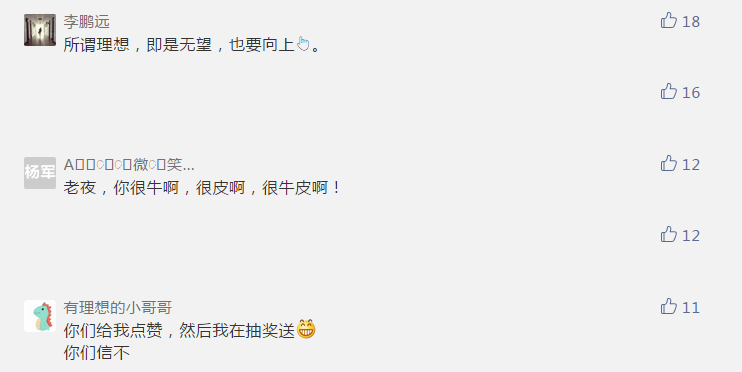 第一次接这种活动由于准备不充分许多地方还有不足之处,活动的火爆实在是超乎老夜的想象,一并打破了公众号自创立来评论留言最多的一篇文章,并且在半小时内精选留言全部爆满,因此许多后面小伙伴们的留言均是无法精选显示。之前没能评论入选的小伙伴可以在此文章内敬请留言吐槽了,这次不送东西应该不会出现精选留言满了的状况~~~