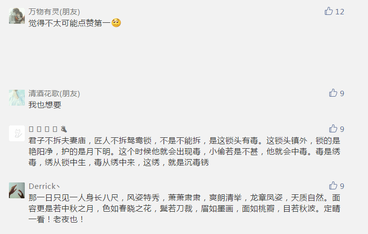 点赞排名会随时间而发生变化,这里活动获奖信息以老夜录入时的排名为准,为保障公平性活动全程透明并由微信群友共同监督。