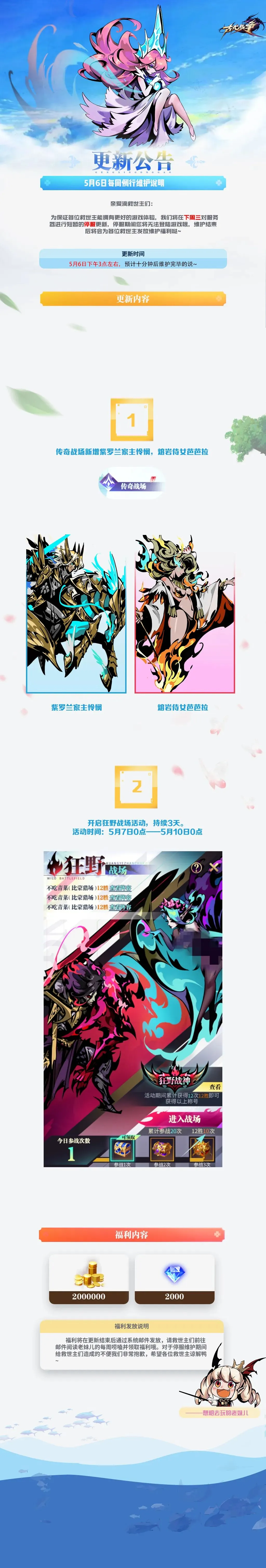 【更新公告】5月6日每周例行维护说明꒰๑´•.̫ • `๑꒱ 关注古代战争官方微信公众号,点击菜单栏第三列【福利互动】→【专属福利】,即有礼包码掉落~ 每个账号只可领取一次,每个码只可兑现一次~数量有限,救世主赶紧来领取吧!(>ω・* ) 请大家给老妹儿 一颗小星星哦~☆(。◕ᴗ◕。)☆