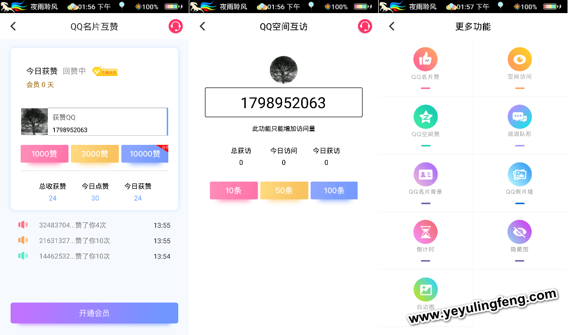 软件目前有部分功能以及广告植入,广告可付费关闭,免费功能足够日常祸祸,用自己的大号试了下效果还不错,挂了一会后回赞的速度也非常快。