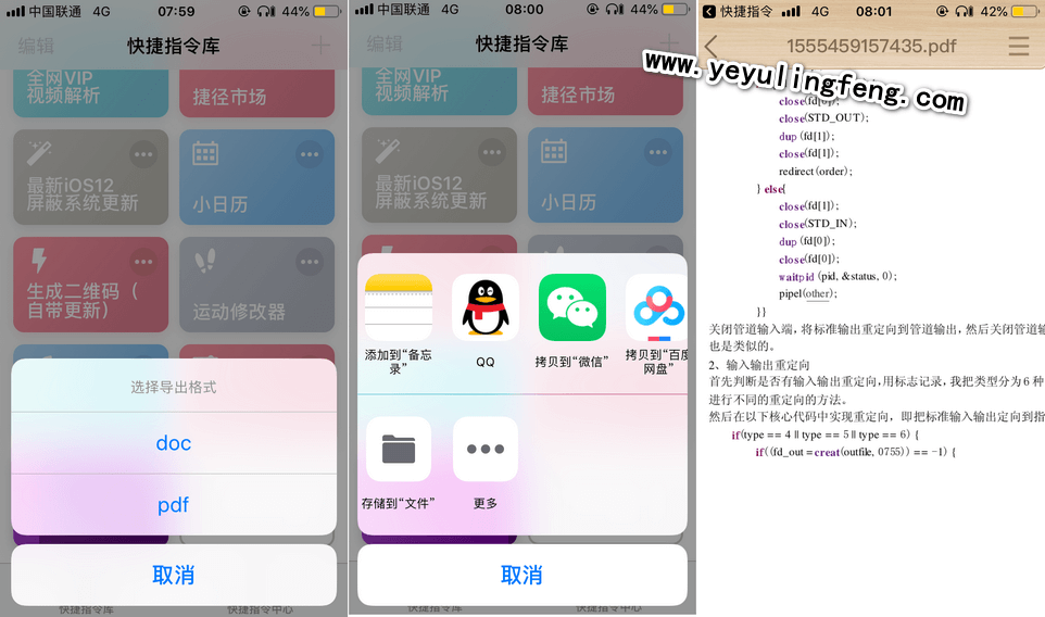 处理需要若干时间,待弹出导出时可以自定义选择PDF和doc两种文档格式,选择一项后就能下载至本地,鉴于苹果的文件管理功能体验不咋滴,这里老夜直接拷贝到QQ了,将文档打开可以看到排版内容都是十分规范完整
