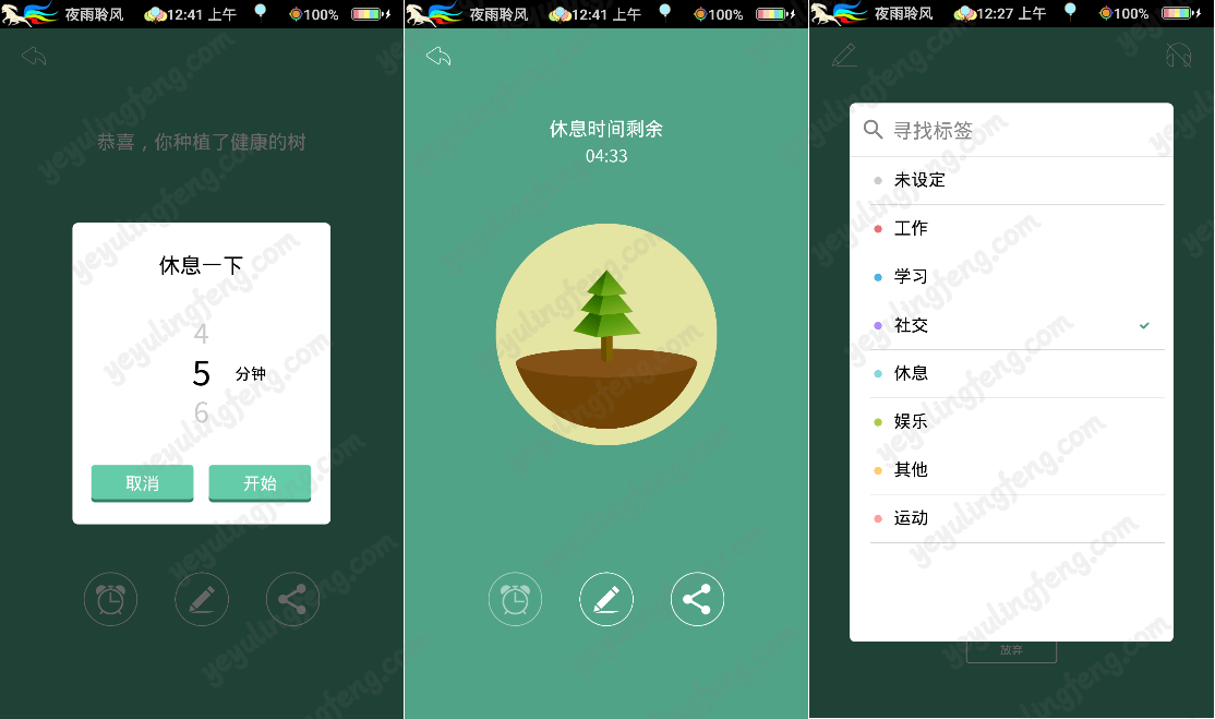 然而这还没完,当你种植了一棵健康的大树后系统也会默认奖励你5分钟的休息时间,在此期间你可以打开其他应用进行适当娱乐了,休息计时完毕后将会进行下一波种树环节中,以此反复,你将会有更多的30分钟来干一些有意义的事务从而充实自己。