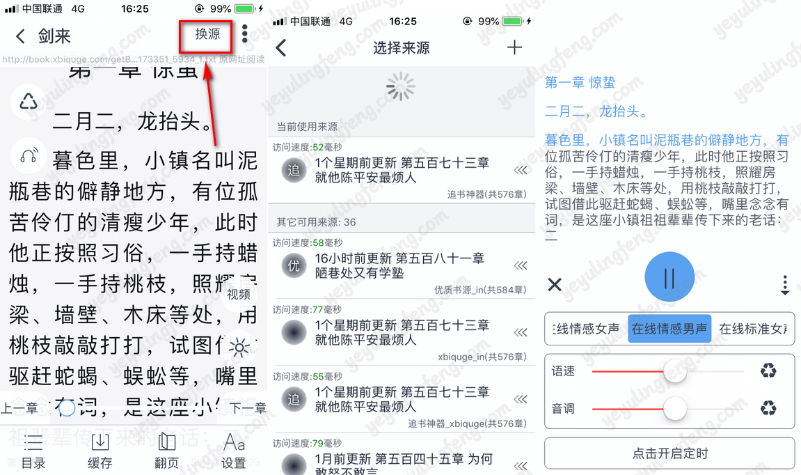 最后就是阅读体验了,基本上与大家之前用过的阅读软件一致,可以在阅读界面换源,看书眼睛累了还可以直接语音朗读,彻底解放双手。