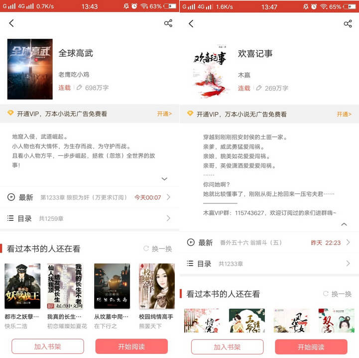 无论是男频大火的《全球高武》还是《诡秘之主》,还是女频现言的《快穿之我想种田》和古言《欢喜记事》,全网小说在热搜小说都是可以全部免费看哒。