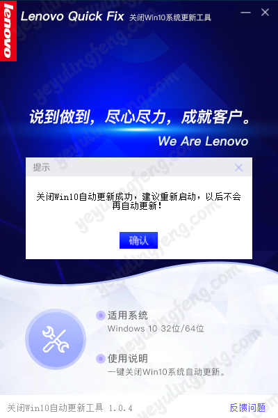 Windows 10出来已经有几年了正是大方光彩的时候,曾经的win7也即将全面停止服务支持了,但是为了兼容以及稳定性老夜还是停留在win7的阵营。小伙伴们可能都心有体会,周边的朋友有不少在电脑更到一个稳定的系统后就关闭更新了,但是官方为了解决一些bug还会出现强制性升级等情况,至于升级后的事故现场老夜在几位朋友以及同事的身上有目共睹过。虽然现在重装个系统要求也是越来越低,傻瓜式一键操作的工具太多太多,但是系统崩了花费时间精力装系统或者导致数据丢失还是非常令人头疼的。想要彻底屏蔽自动升级靠着网上搜到的方法麻烦先不说可用性就需要好好考证,今天老夜为大家带来一款由联想官方出的一款Windows 10一键屏蔽更新工具,适合电脑小白以及像老夜一样的懒癌患者。小工具轻量无需安装打开即用……