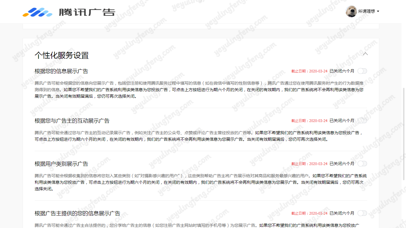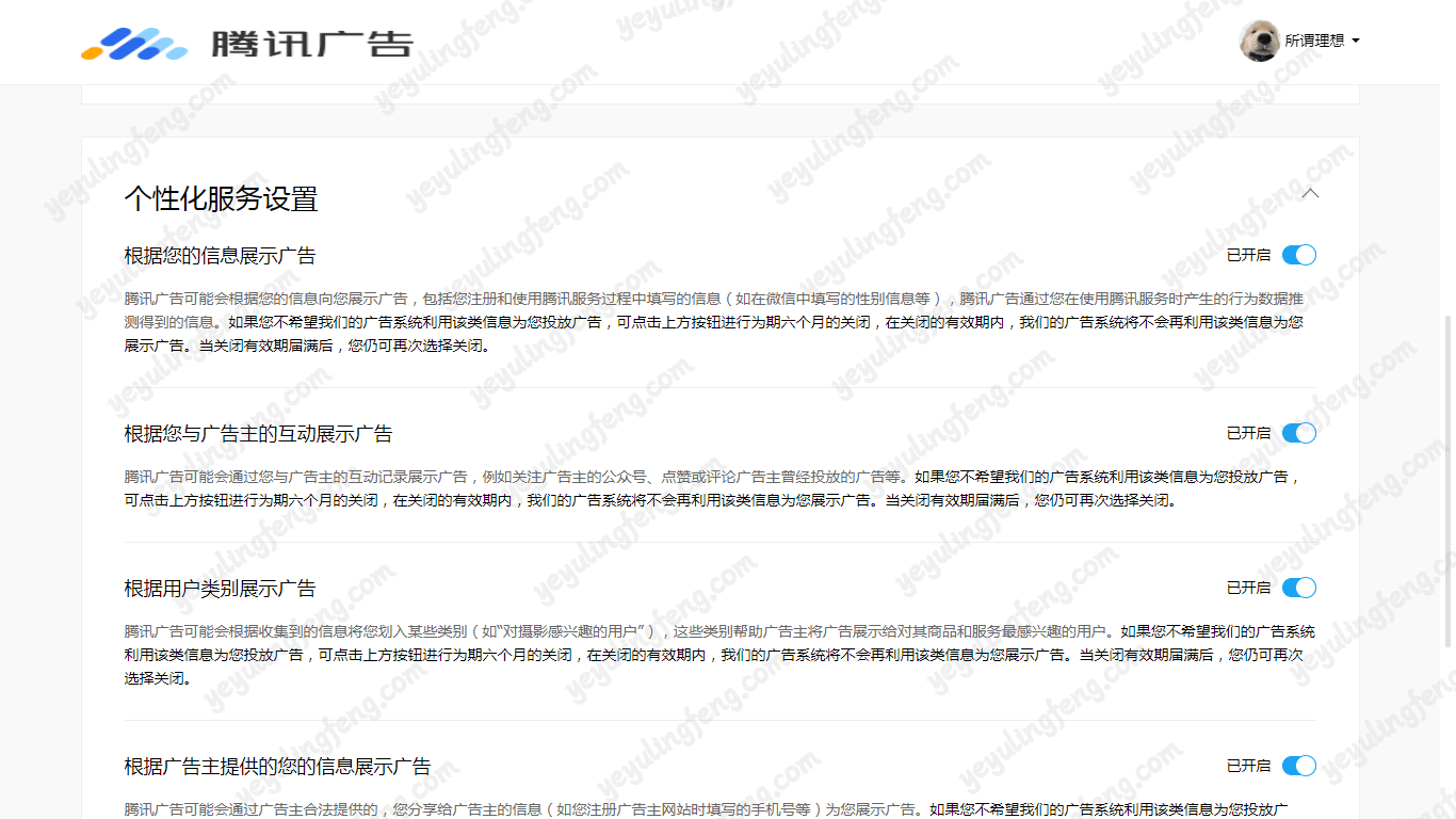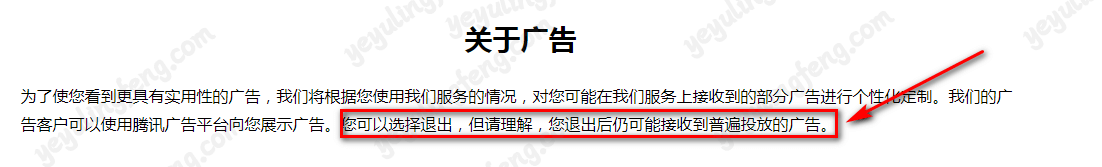 “注:请注意,关闭上述服务意味着我们的广告系统不会再利用该类信息为您展示广告,但不代表您将减少看到的广告或不再看到广告。在关闭该项服务期间,您仍可能收到普遍投放的广告。”
