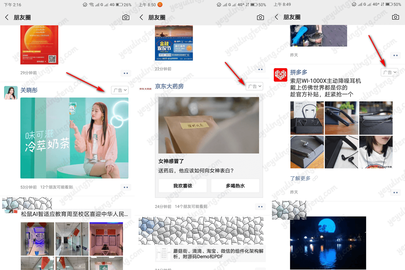 微信玩了也好几年了感觉一些地方始终是没有QQ好用,就比如传文件或者群聊功能方面一直不是太好用,当然了今天老夜并不是来吐槽的,而是教大家关闭应用内朋友圈的广告。不知从何时开始打开朋友圈时就有一些广告插入了,有时候吧刚搜完某样东西打开软件就给你推荐相关的广告了,大数据时代真的是****。具体广告如下图,老夜就教大家手动通过官方途径个性化管理腾讯广告。
