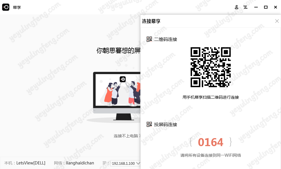 使用方法就更简单了,手机与电脑都安装上幕享LetsView的应用程序,这款软件方便到注册登录都省了,打开即用。支持手机扫描二维码链接,或这直接输入投屏码,但是注意一点就是需要参与投屏工作的两台设备均要处于同一网络环境下,至于传输速率以及稳定性完全以本地网络波动有关。连接另一台设备后就能快速投屏了