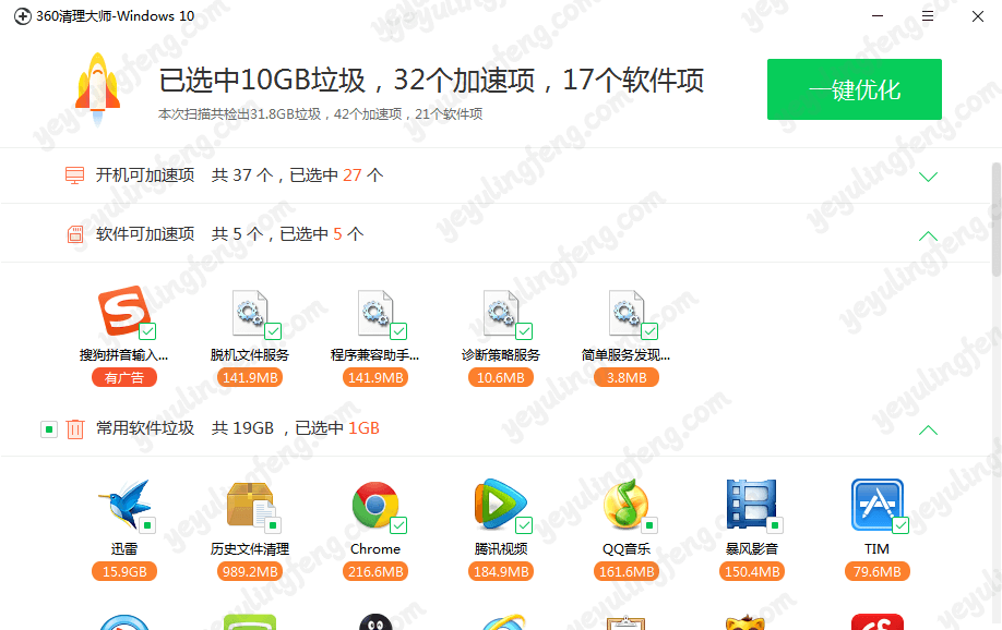 清理功能就不用过多介绍了吧,软件缓存文件、卸载残余、日志文件等都能自动扫面清理