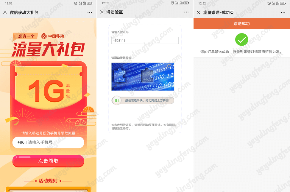 填个手机号码接受个验证码就行了,流量到账也是非常快速