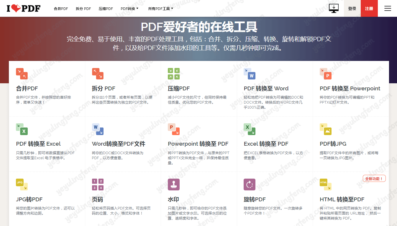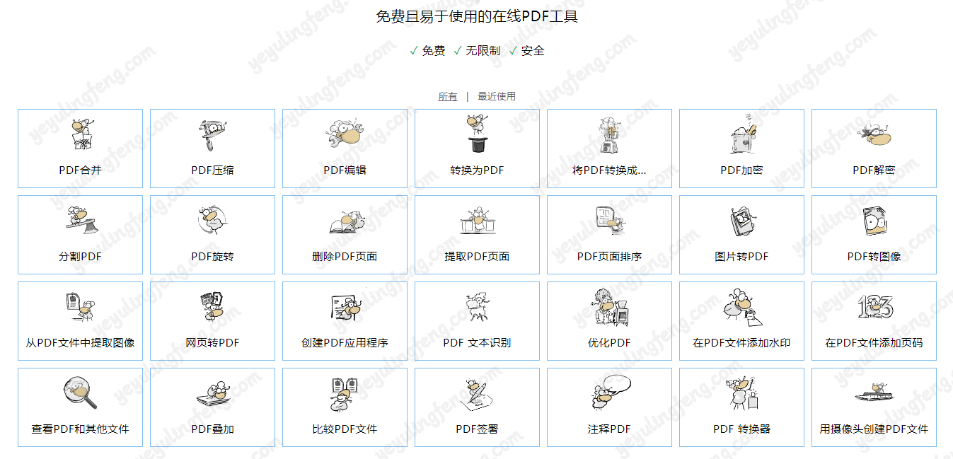 老夜这个星期开始已经在家远程办公了,时不时打开个需求文档电脑都得卡半天,落后好几年的配置已经不允许拿来当生产力了,更何况处理一些文档资料。常见的文档也就office以及PDF,office站内之前就分享了太多太多资源。今天老夜为大家整理一些在线处理编辑PDF的网站,功能繁多全部免费,使用简单方便还不需要下载工具就能快速的处理文档了,实在是渣机用户的福音!