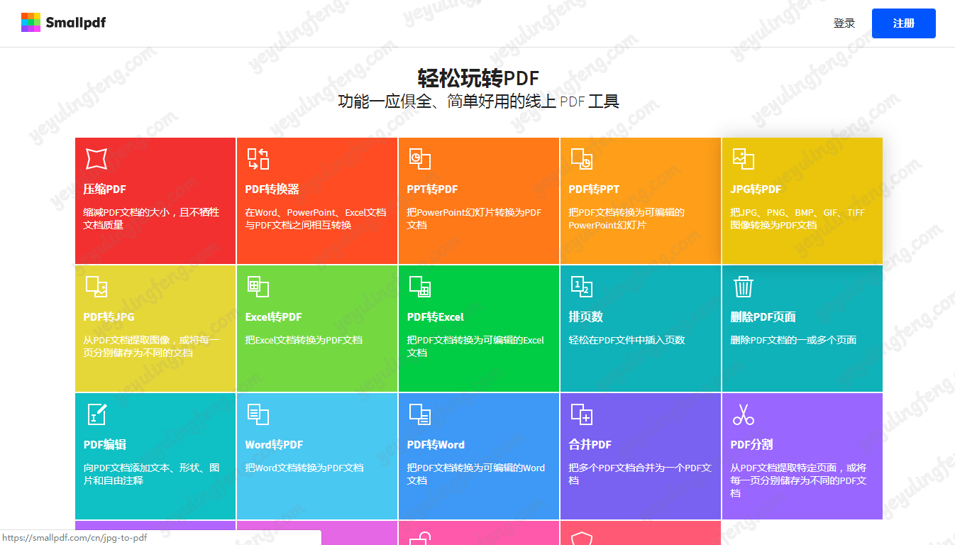 与上面的LightPDF差不多挺经典的一款在线转换工具,网站首页没有推广PC工具以及收费项目之类的,功能几款比较下来都差不太多这里老夜也就不再一一介绍