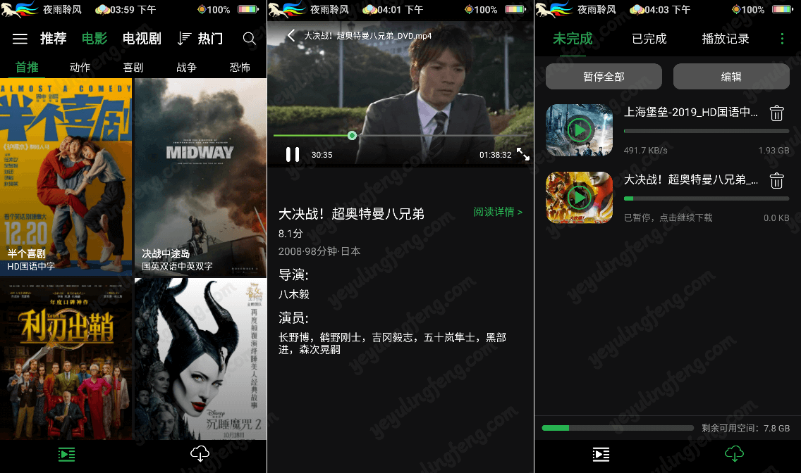 不少第三方视频里面都会有一些广告水印什么的也一样影响观影体验,老夜随便用荐片看了几个影片均无发现,这点好评