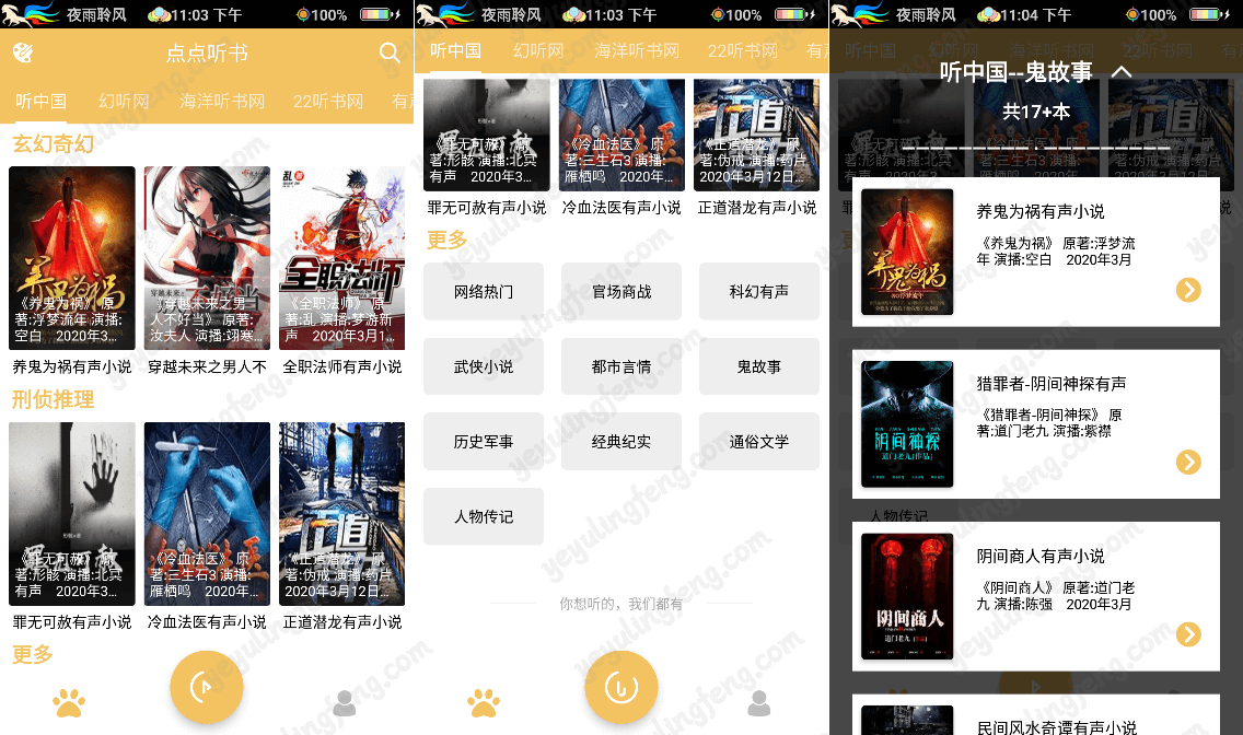 记得之前老夜分享过一款叫我的听书的免费听书APP,该工具就是将互联网中一些免费的听书网站上的资源爬取过来,直接将整理好数据就能供用户使用啦!今天继续为大家带来一款类似的工具,点点听书与先前分享的那些差不多但是功能有所增加体验也非常不错,支持账户云同步,支持离线缓存,喜欢听书的小伙伴们不要错过了!