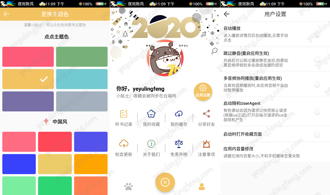 打开软件为保重所有功能正常使用建议先注册账号,软件自身是完全免费注册只需要输入账号密码就行了非常方便。可以设置主题色,上传自定义头像,以及在听书播放时的一些简单设置项。