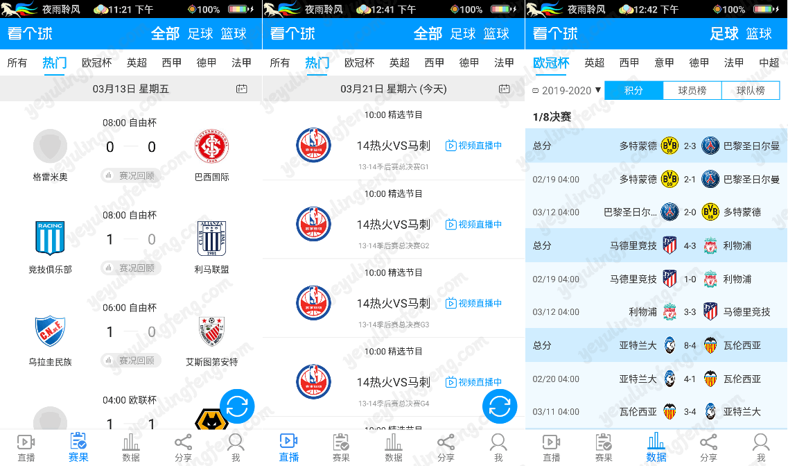APP内可以获取你喜欢的球队详细的数据信息以及赛事记录,每场比赛的比分、实况甚至是中间解说都非常详细,喜欢的球员、球队或者欧冠、NBA、CBA、NCAA等职业联赛都能一网打尽!