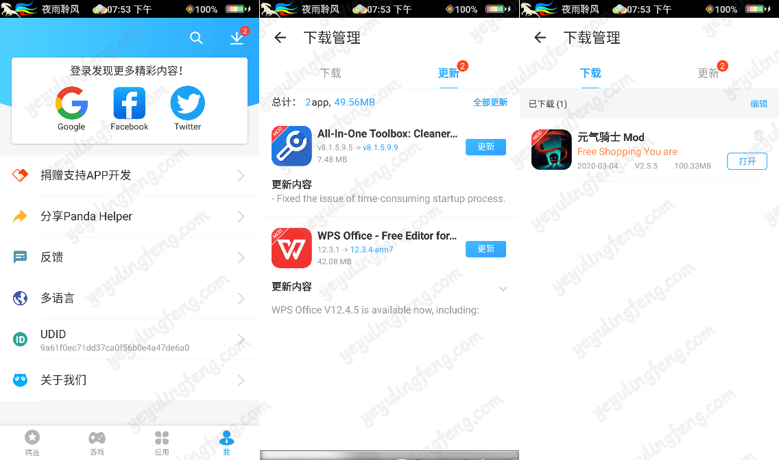 Panda Helper中文名为熊猫助手,你可以将他当做是一个应用商店,只不过里面的资源都是修改版,资源种类多不说安全性也是有保障的,老夜不仅拿自己手机当小白鼠还特意去网上找一些讨论帖证实,确定没有问题后才分享出来。目前支持Android、iOS、Mac、Windows