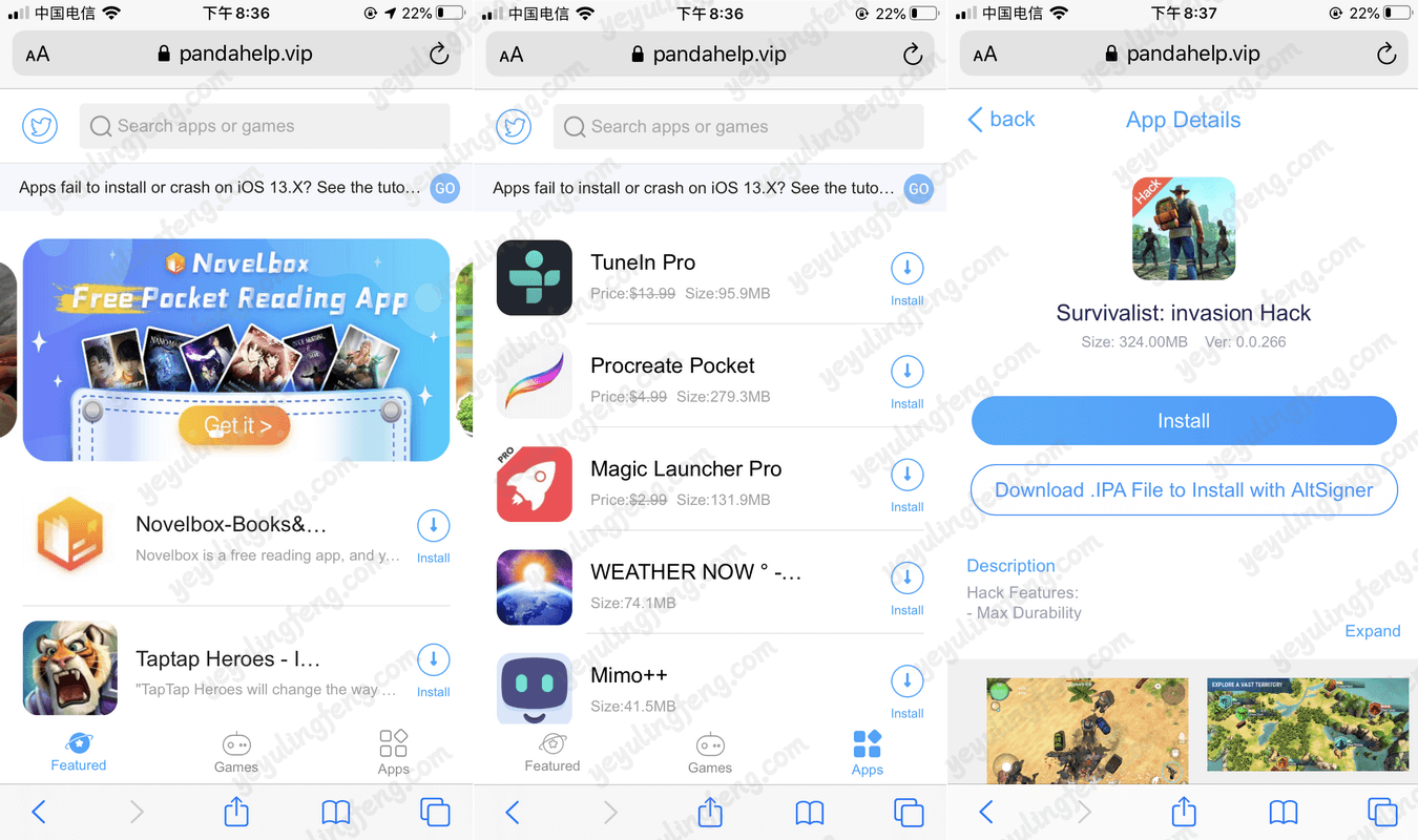 Panda Helper算是老夜见的比较全的资源汇聚工具了,里面都是修改版本的主流应用。无论是游戏还是实用软件收录的数量还是非常多的,如果对安全性有所顾虑请移步软件官方下载。