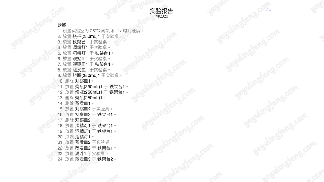 中学时的一些化学题都会要求文字填写实验报告,而这款工具可以根据你的操作顺序自动生成,前提是你的操作没有问题