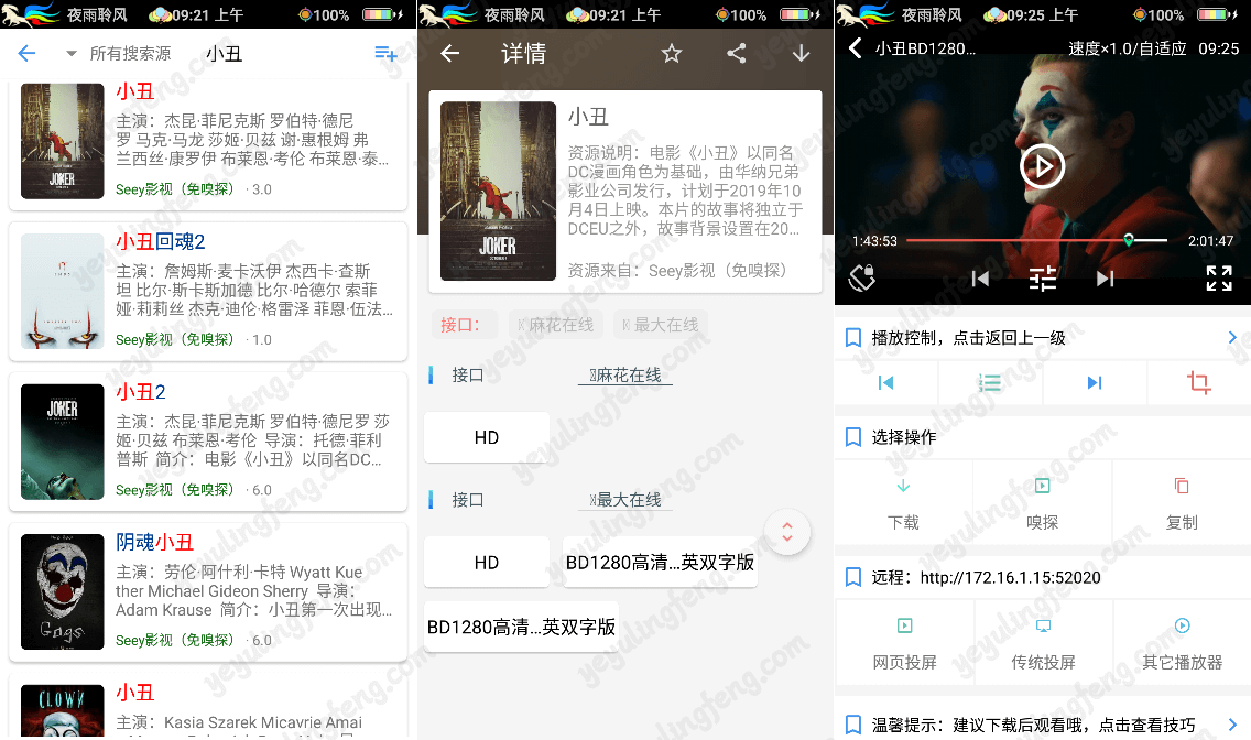 因为规则一次性会导入大量站点源,搜索功能就显得格外强悍了,基本上只要是正经的资源都能找到,规则中的部分站点不稳定等因素导致播放错误的,可以直接换下一条搜索记录点击观看。通过海阔影视还能将这些视频进行下载以及投屏,老夜使用了几次虽然不如软件内置投屏播放来的方便稳定至少有这个功能还是挺好的。下载功能以及投屏并不完全适用于规则中的所有站点,偶尔会出现无法正常使用等现象。