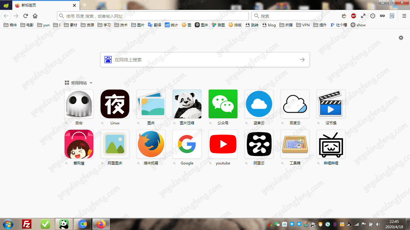 安装好后通过简单的设置就可以上手使用了,老夜推荐先注册个账号,将主页新窗口和标签页设置为FireFox主页就行了,在FireFox主页可以自由设置成自己喜欢的布局。搜索引擎内置百度,默认的几个常用频率较高的搜索引擎,如果没有自己喜欢的可以直接点击“寻找更多搜索引擎”添加其他搜索引擎就可以了。