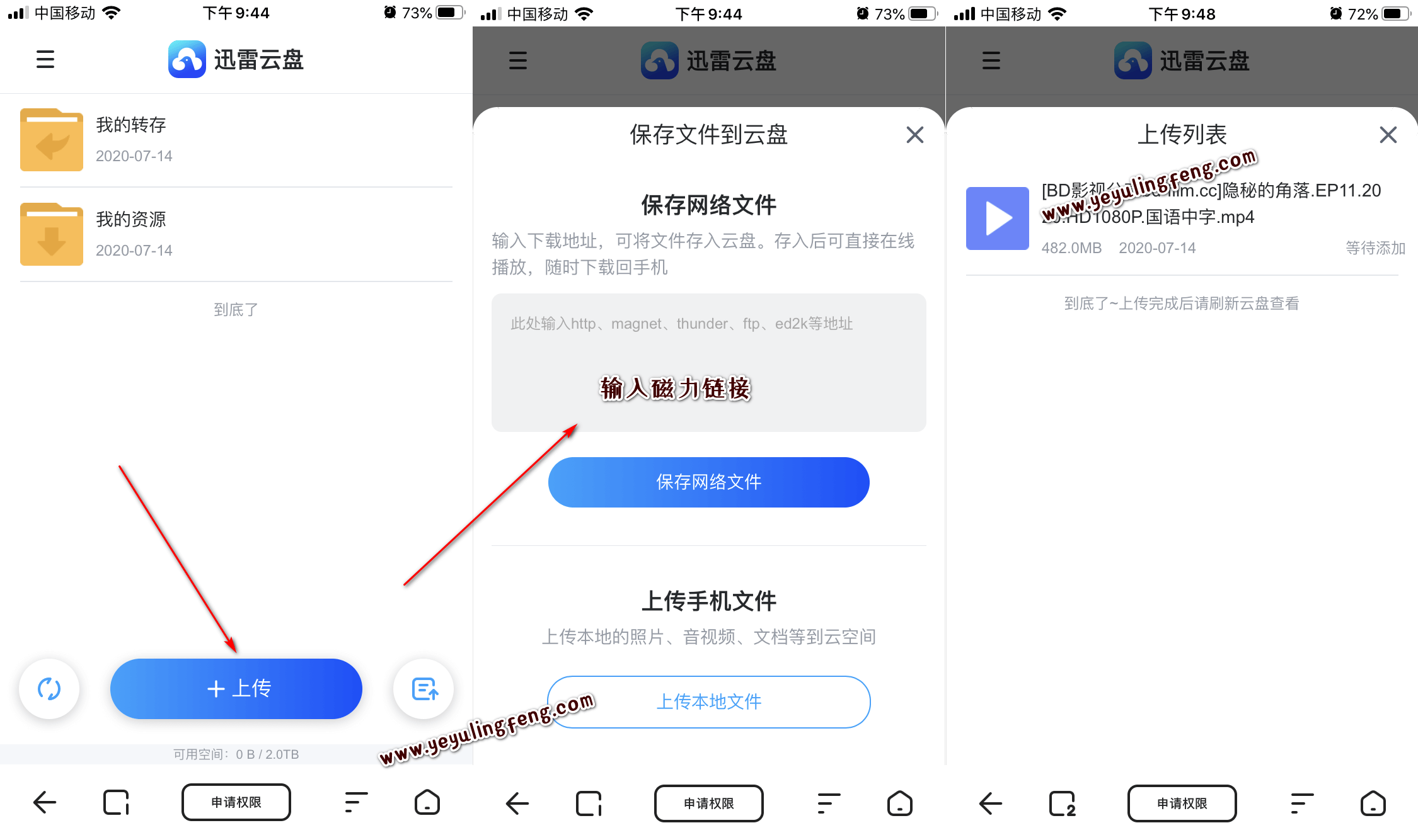 按照上图指示,将复制好的Magnet或者电驴链接粘贴至相关的地方,点击保存至网络云盘 。
