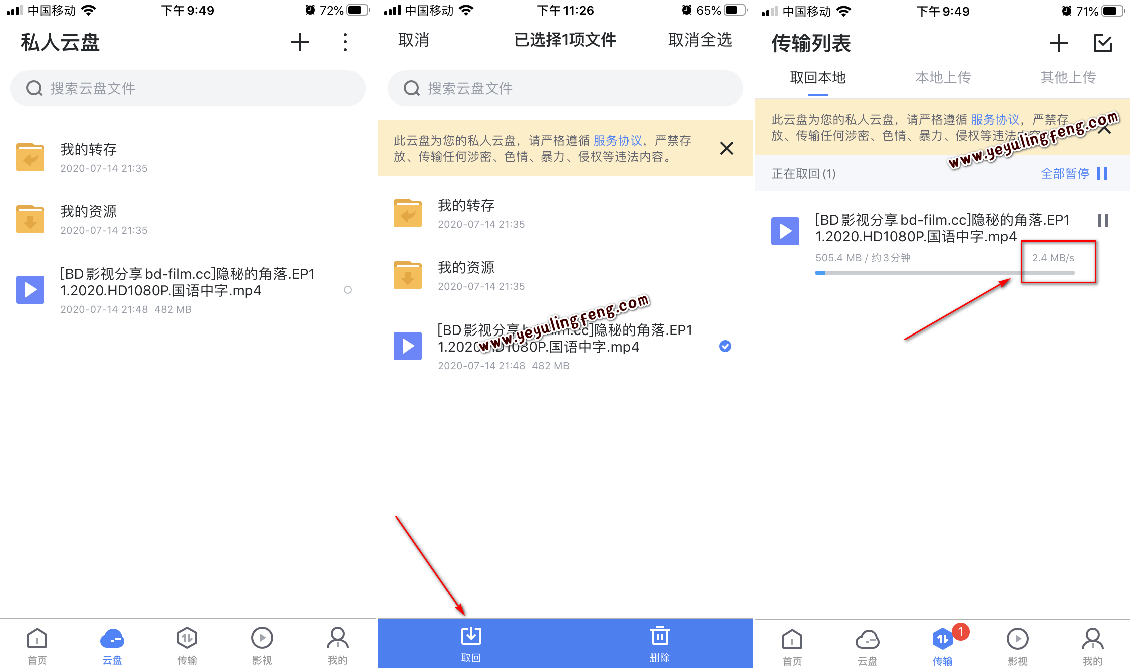 离线成功后切换回迅雷app,点击网盘就可以看到刚刚离线的文件了,然后下载,齐活!速度非常给力!