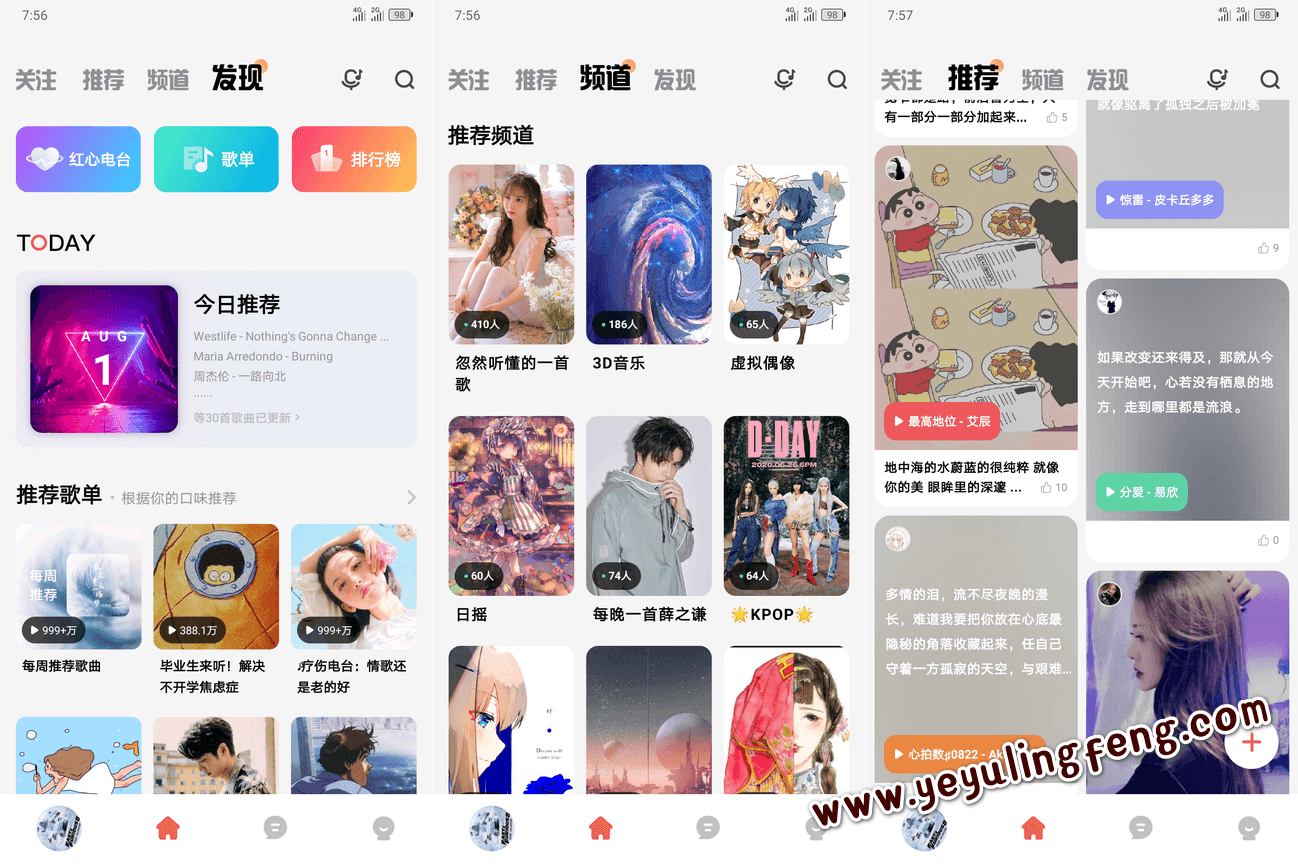 后声音乐的UI界面看起来确实是下了一番心思的,看着非常舒服但是版本更新较为勤快一些方面还在不断着有所变动。频道、歌单以及发现等常用功能还是保留的,个人口味不同老夜一般不会在着几个板块之间浪费流量,具体大家自行测试。