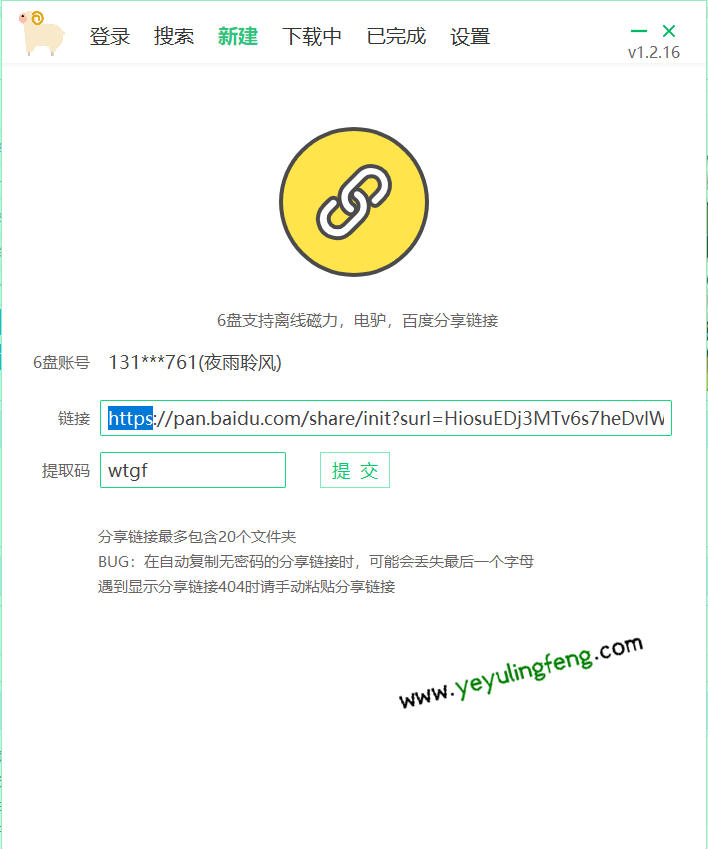 自6月起,6盘限制只有VIP用户才能提交分享链接,作者购买了10个年付会员账号,每天共800次离线次数,供大家免费试用(用完了800次当天就无法继续离线分享链接!)